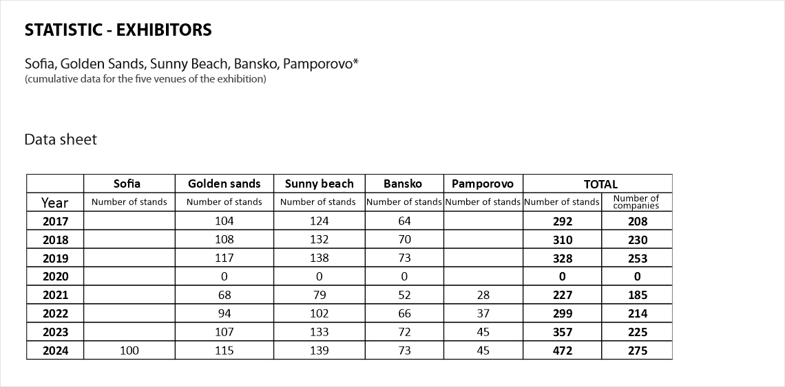 Since its creation, striving to be the best platform for business contacts on the eve of tourist seasons, the event has grown and developed, adding new activities in order to meet the demands of exhibitors and visitors.